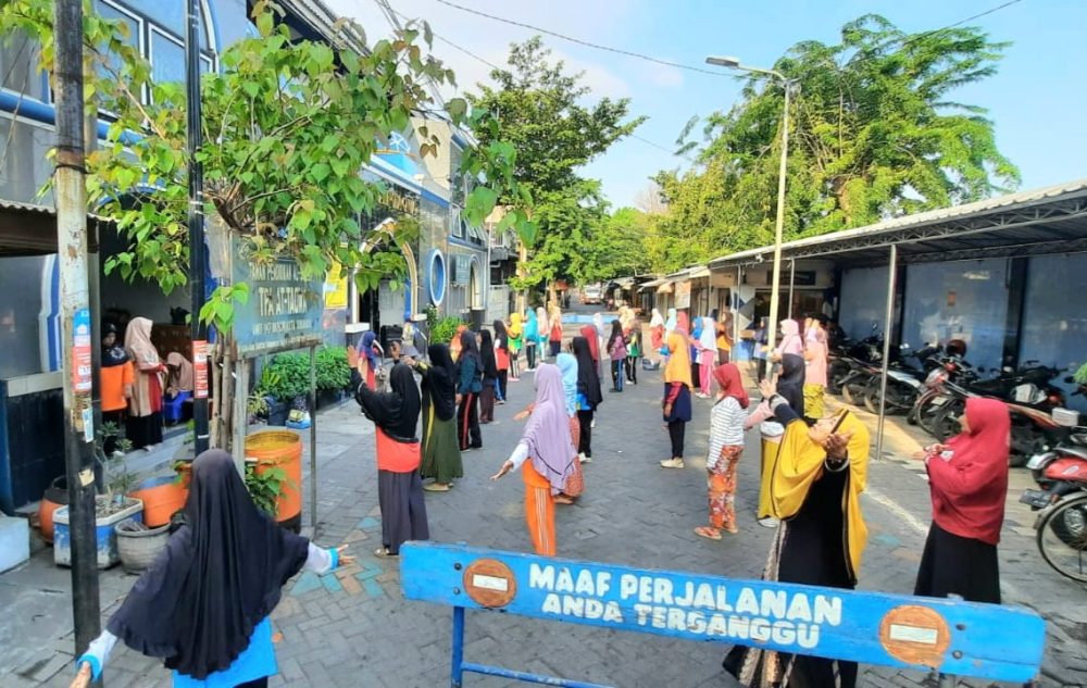 Kegiatan senam Posyandu Lansia Husnul Khatimah di laman Masjid At-Taqwa, Jalan Alun-Alun Bangunsari Selatan No. 9 - 11, Surabaya, Ahad (19/10/2025). (Mursiah/KLIKMU.CO)KLIKMU.CO – Pimpinan Cabang ‘Aisyiyah (PCA) Krembangan kembali menggelar aktivitas Posyandu Lansia Husnul Khatimah di laman Masjid At-Taqwa, Jalan Alun-Alun Bangunsari Selatan No. 9 – 11, Surabaya, Ahad (19/10/2025).