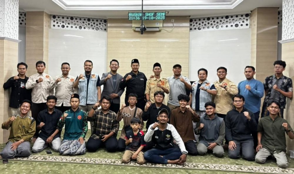 Ketua PCPM Sukomanunggal Ahmad Haidar Asy'ari (tengah duduk lima dari kiri) mengikuti turba area 3 yangg dilaksanakan oleh Pimpinan Daerah Pemuda Muhammadiyah. (Istimewa/KLIKMU.CO)KLIKMU.CO – Pimpinan Cabang Pemuda Muhammadiyah (PCPM) Sukomanunggal menghadiri turun ke bawah (Turba) area 3 yangg dilaksanakan oleh Pimpinan Daerah Pemuda Muhammadiyah (PDPM) di Masjid Muhammadiyah Al-Fajr Dukuh Pakis, Ahad malam (19/10/2025).